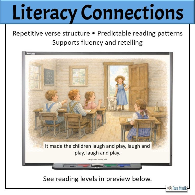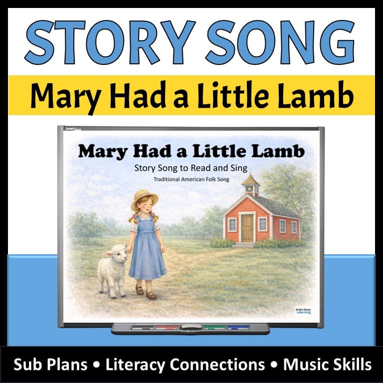 Bring music and reading together with this illustrated Mary Had a Little Lamb story song set for elementary music and K–1 classrooms. This resource blends elementary music activities with literacy and simple SEL connections in a way that’s easy to use.